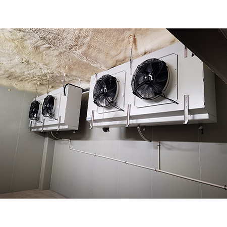 利用壓縮機排氣的高溫制冷劑來化霜,環(huán)保節(jié)能; 自動熱氟融霜,除霜速度快、效果好、能耗小; 自動熱氟融霜是靠電腦自動化控制的,當冷庫內(nèi)需要融霜時